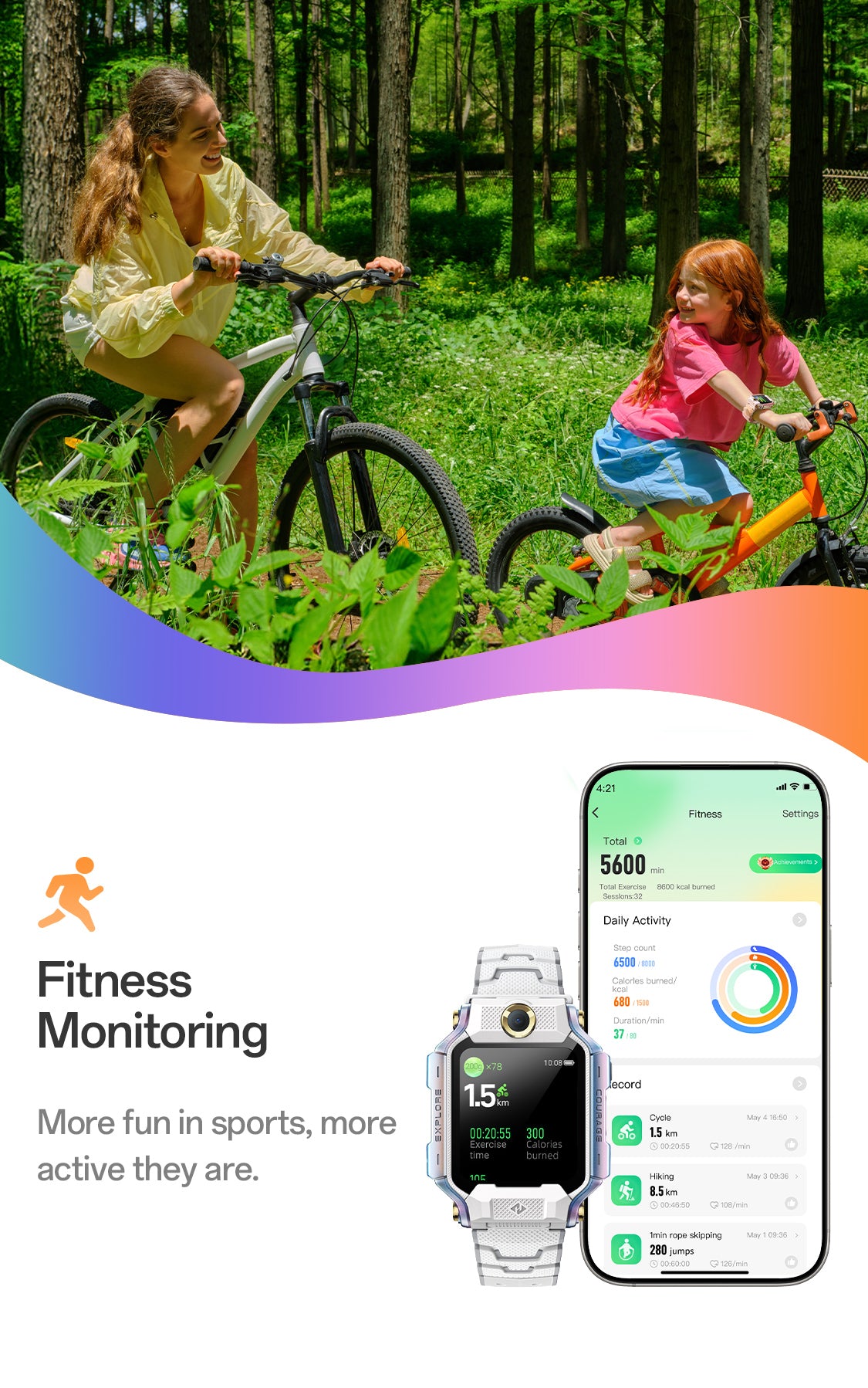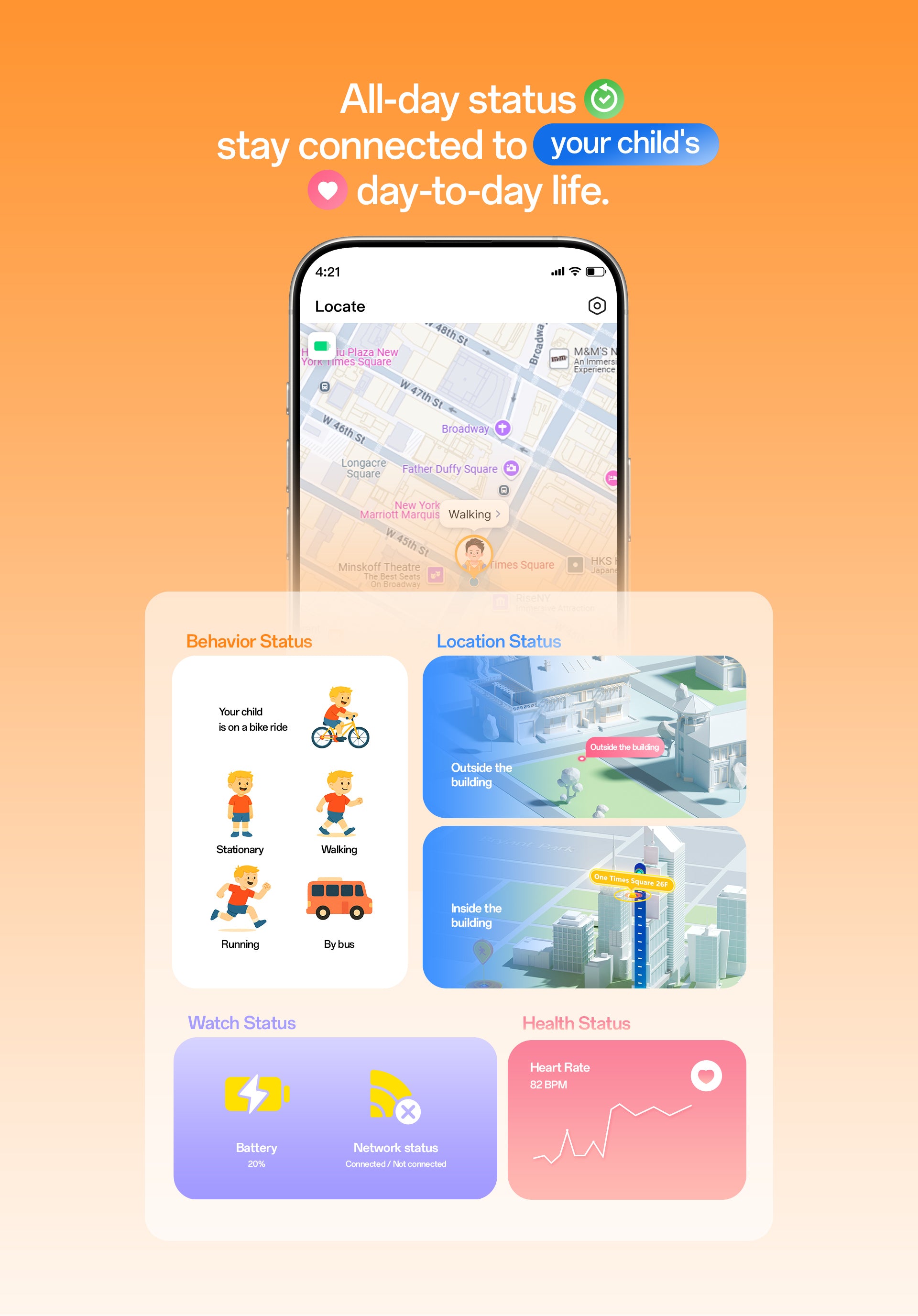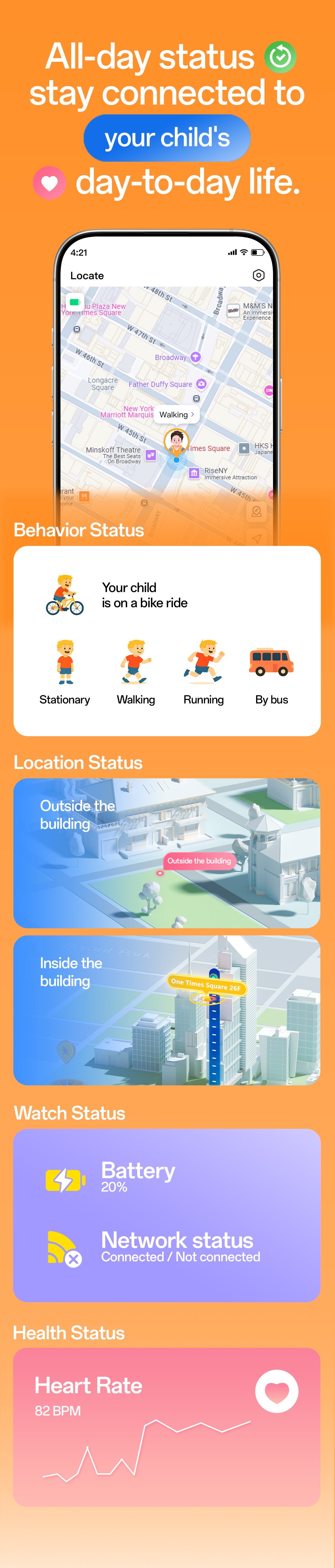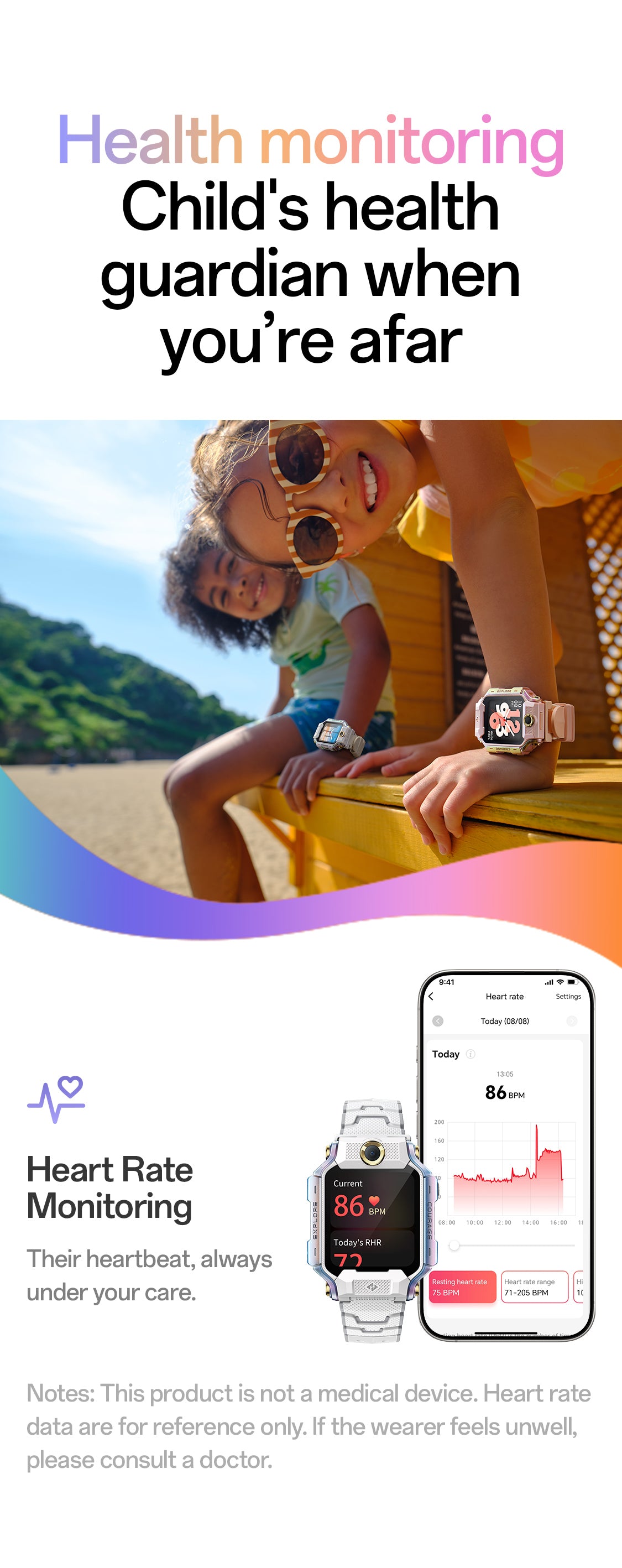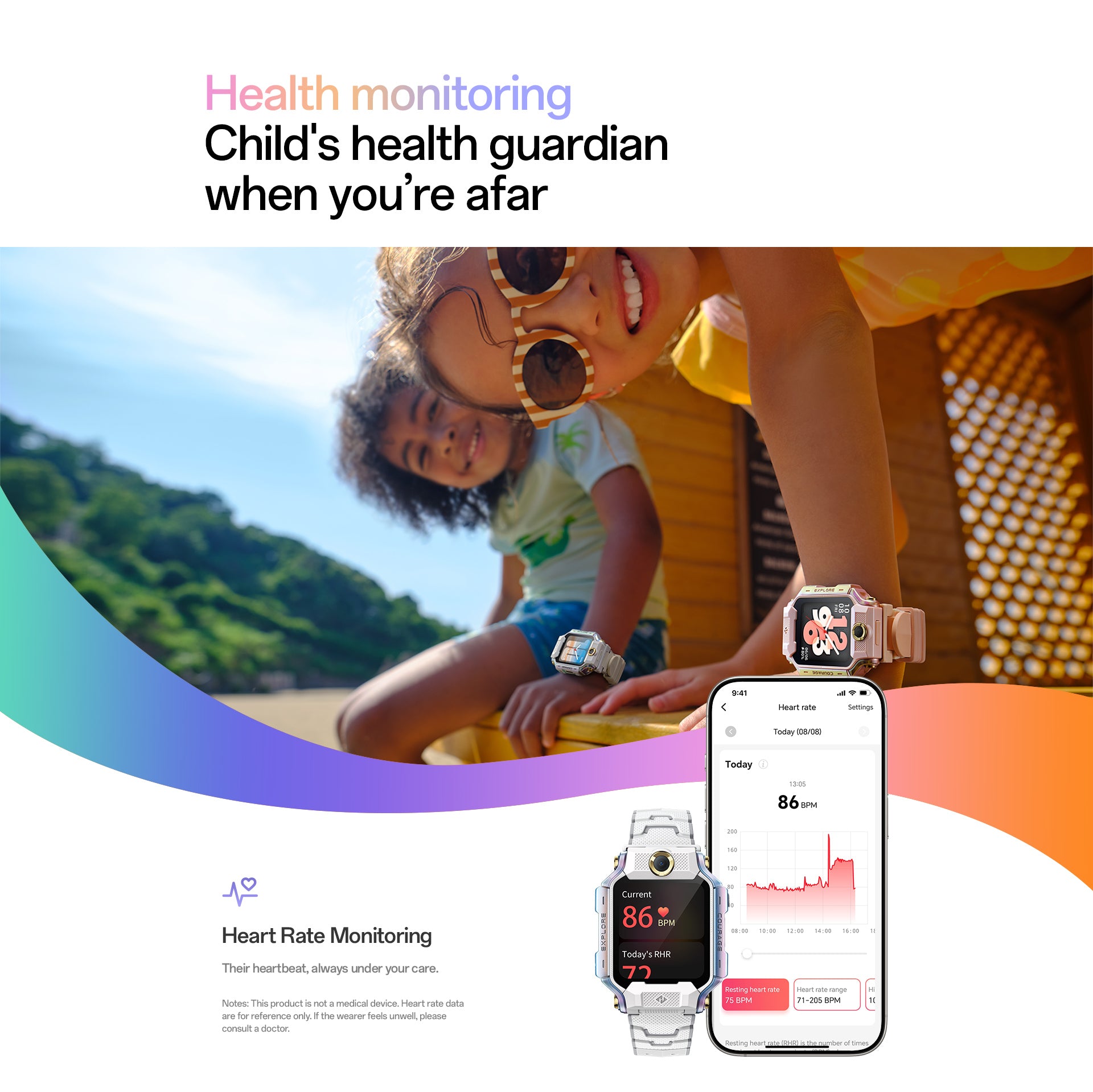 4. 24/7 Health Monitoring:Continuous heart rate and activity tracking with smart alerts helps parents safeguard their child’s well-being anytime.