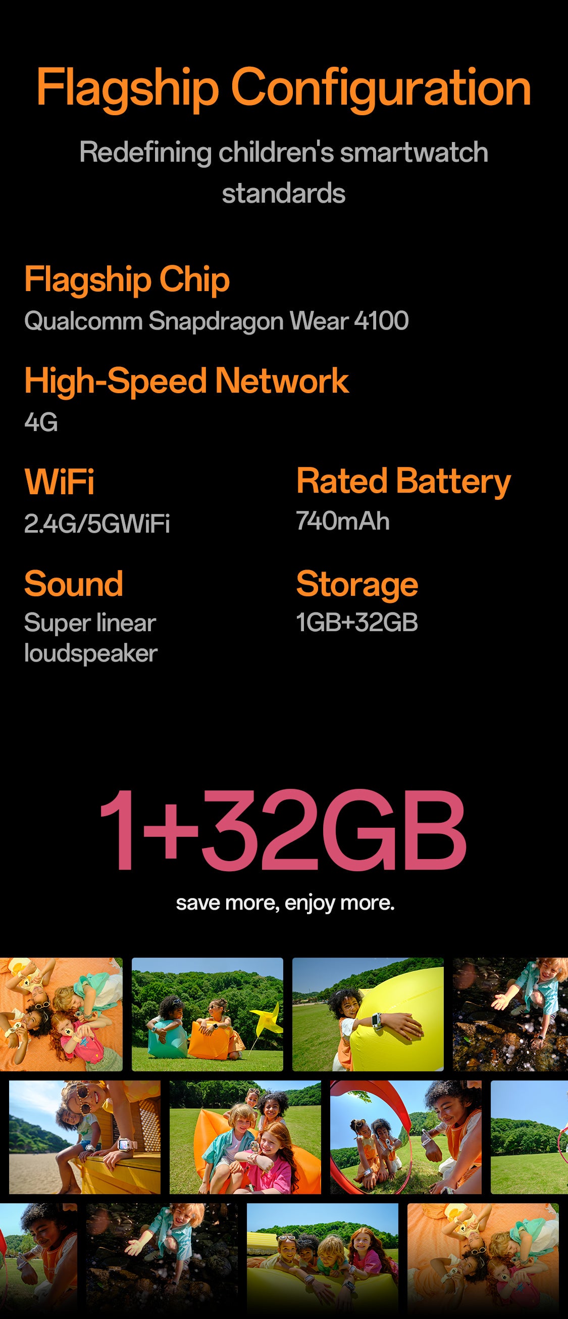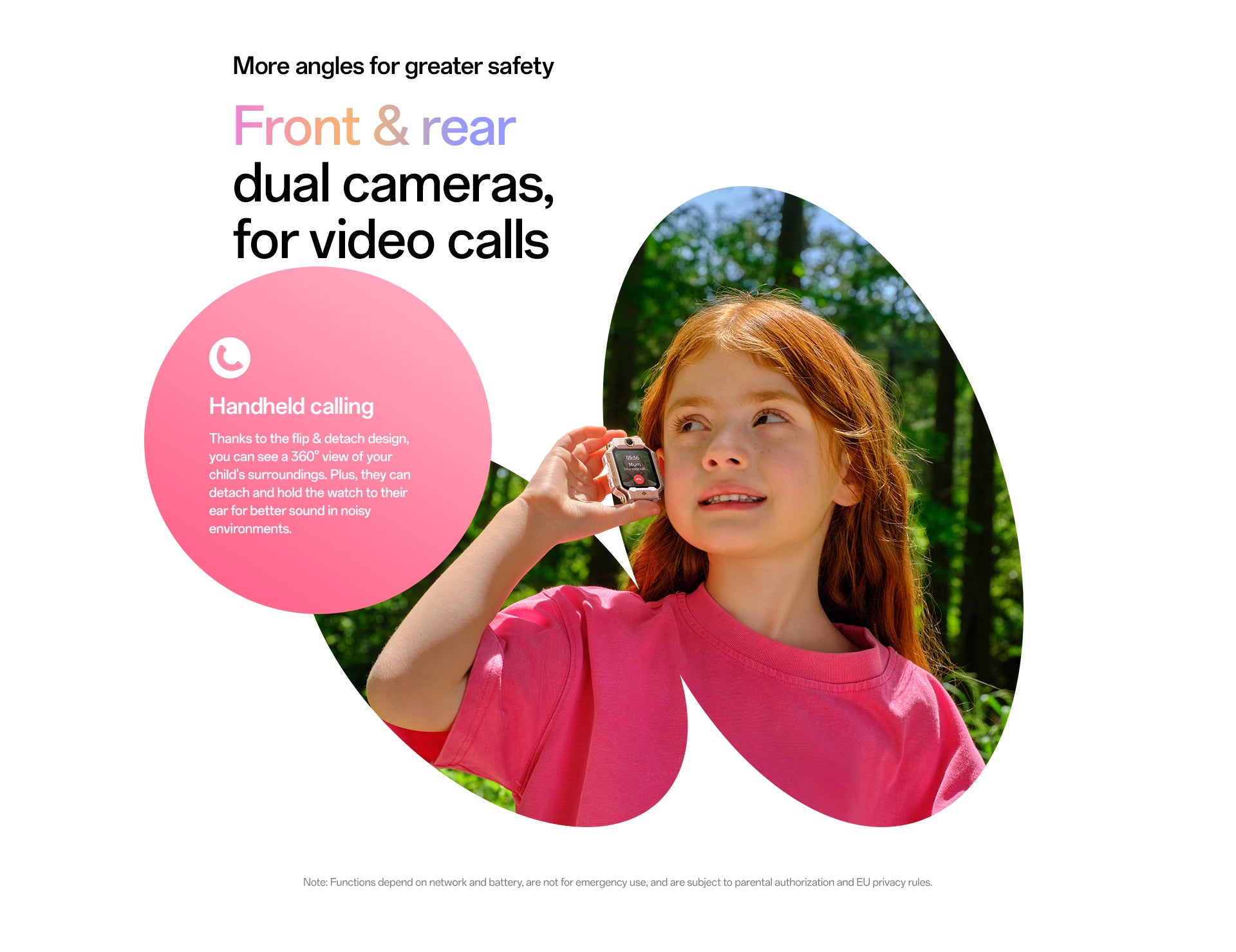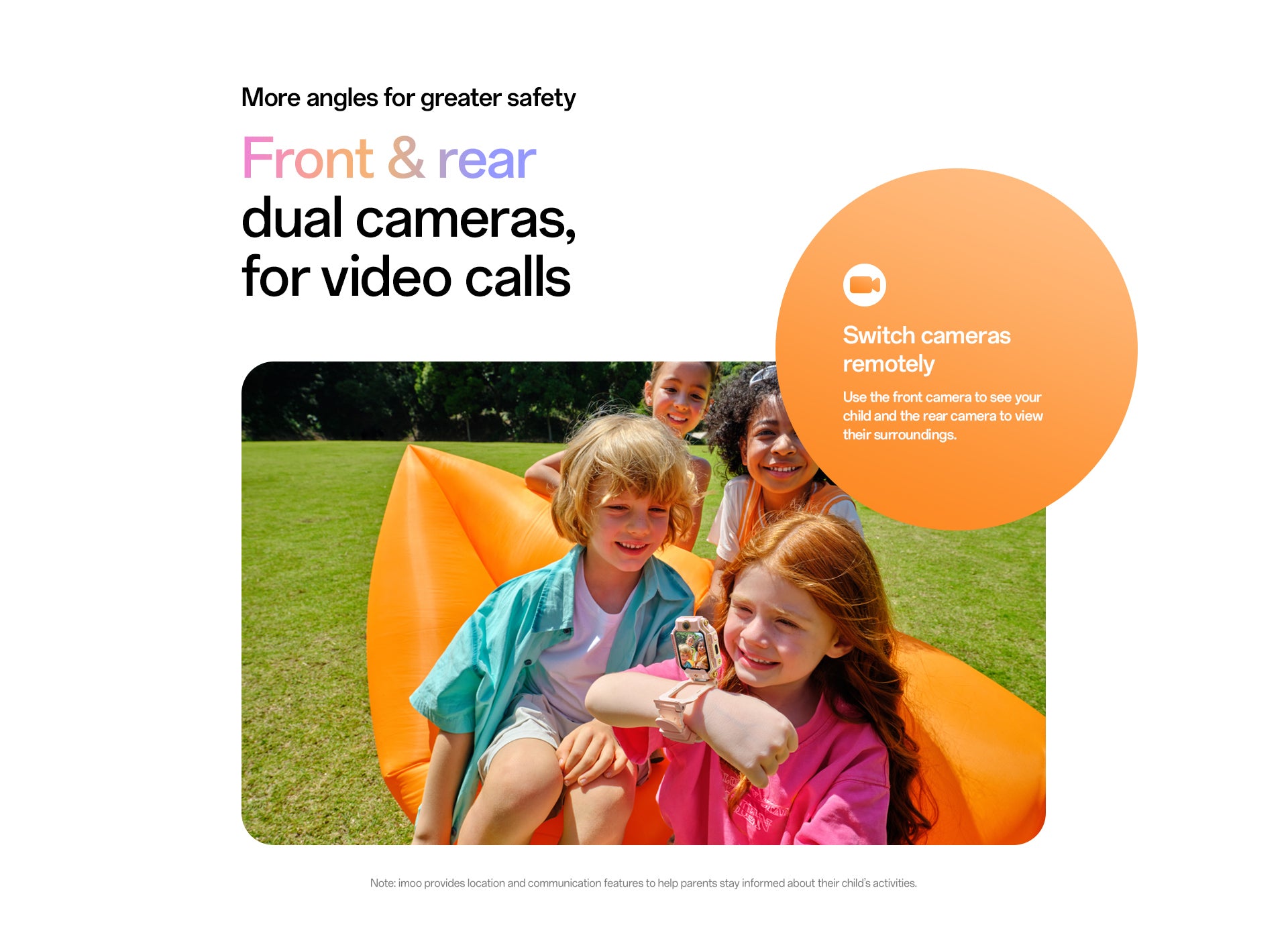 1. Flip & Detach Dual Cameras:An innovative 180° flip-and-detach design with front and rear cameras, giving children and parents more ways to connect and explore their surroundings.
